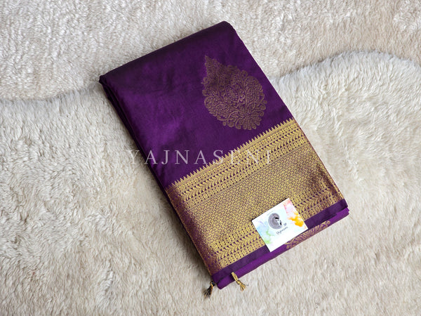 Semi Kanchi Silk x Gold Zari Saree - Dark Purple