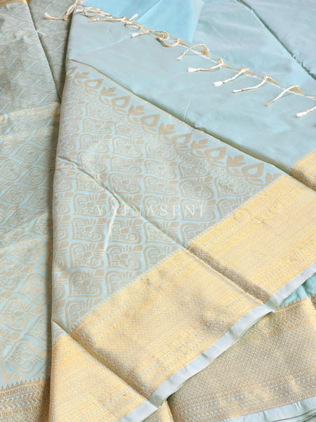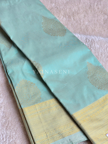 Semi Kanchi Silk x Gold Zari Saree - Pastel Turquoise