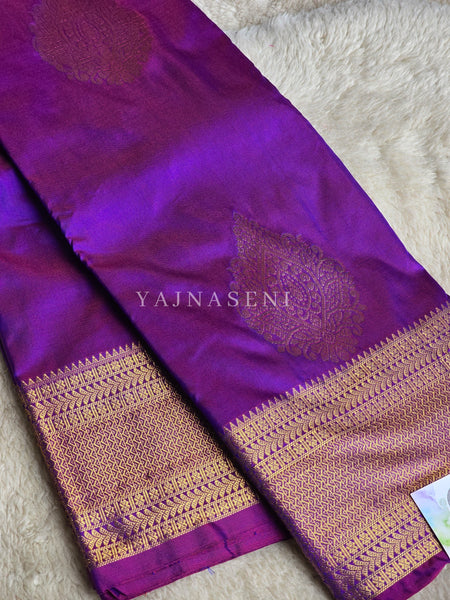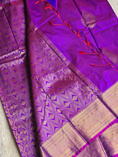 Semi Kanchi Silk x Gold Zari Saree - Purple Garnet