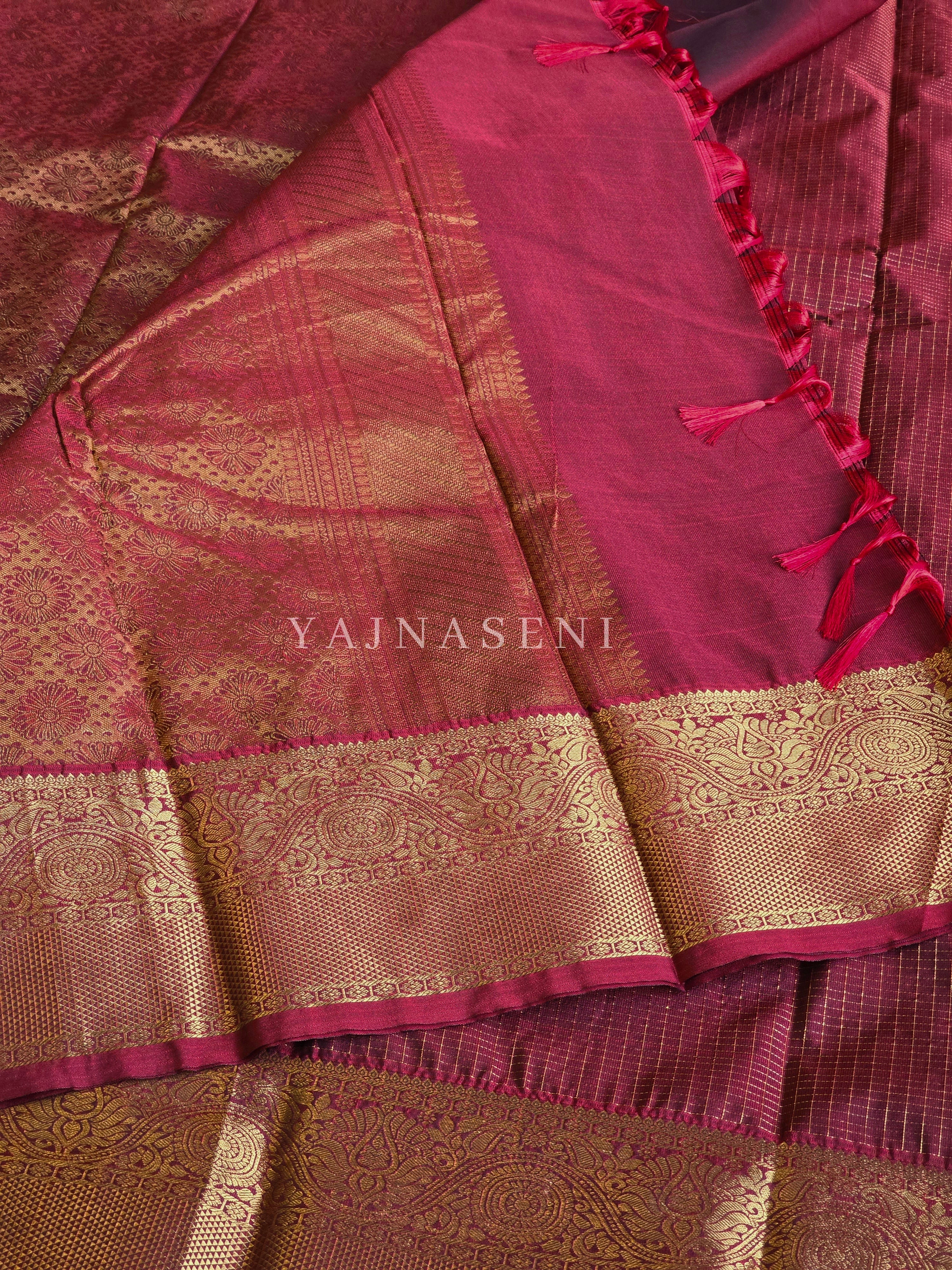 Vaira oosi x Checkered Saree - Maroon