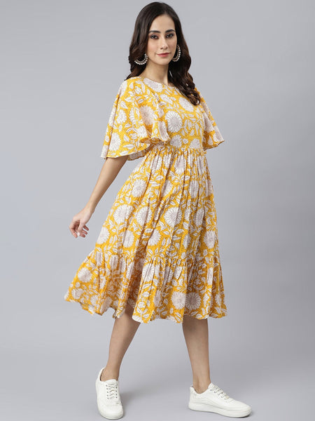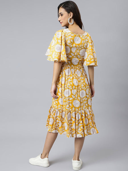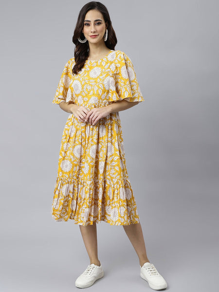 - Dress - Cotton. 1/2 Fluttered Sleeves.