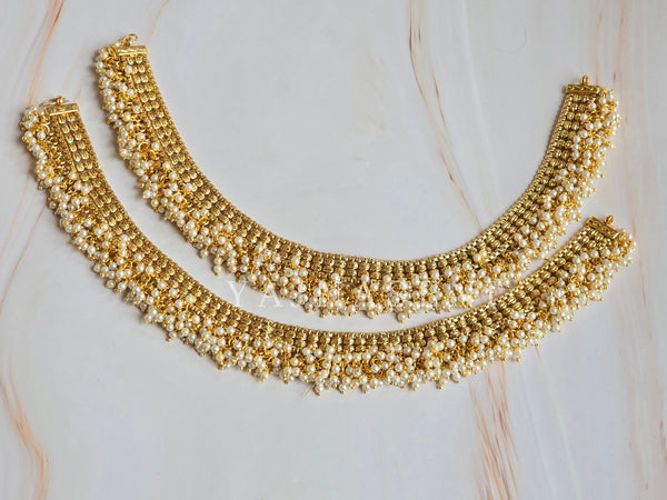 Complete your look with this gold pearl anklets.