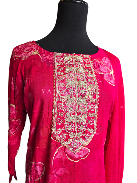 MAHIMA [S/36] - Straight Cut Kurti Set (Hot Pink)