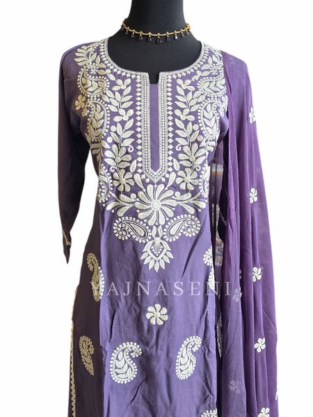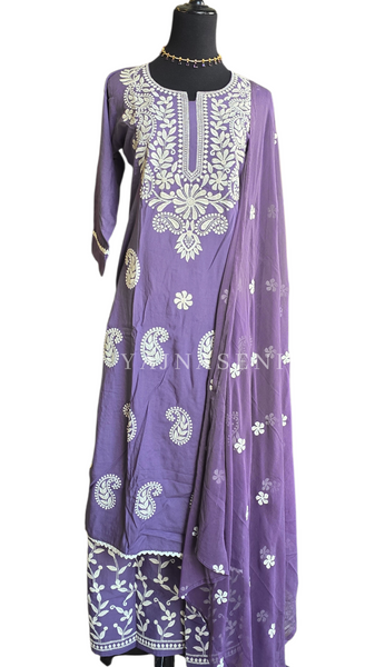 Color: Purple with white embroidery work