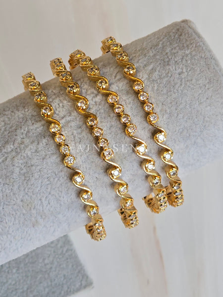 4. Stone bangles: Avoid putting pressure on the stones, it poses a higher tendency to fall out. Hold the bangles firmly, and push them in / out when wearing and removing respectively.