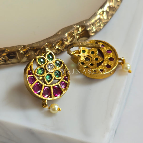 A bugadi helix clip-on is a non-pierced version of the traditional bugadi, designed to hug the upper ear cartilage securely with a clip mechanism ; giving the same ornate, ethnic look without needing a helix piercing.