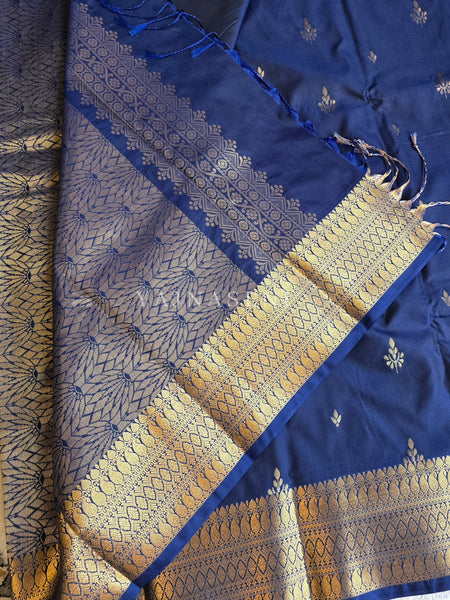 Dainty Motifs x Semi Soft Silk Saree - Navy Blue