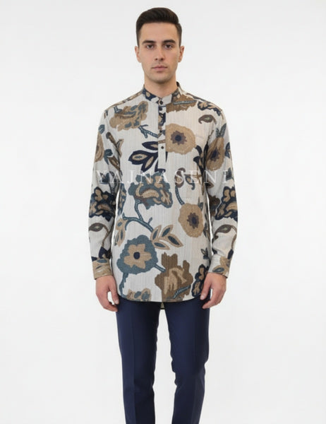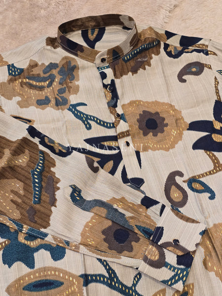 - Top - Rayon. Mandrian collar. Long Sleeves