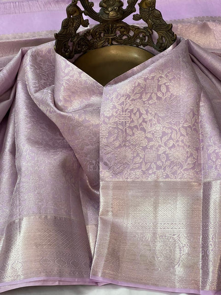 HEATHER MIST - Pure Kanjivaram Silk Saree with Light Gold Zari