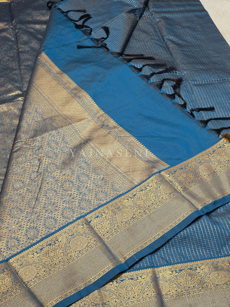Vaira oosi x Checkered Saree - Dark Teal Blue
