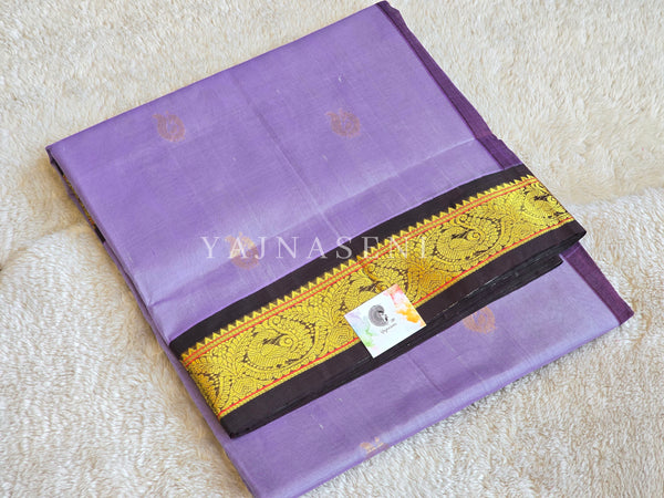 Handloom Kanchipuram Silk Cotton Saree x Annapakshi border : Heather Purple x Dark Wine