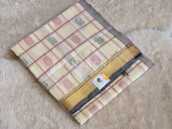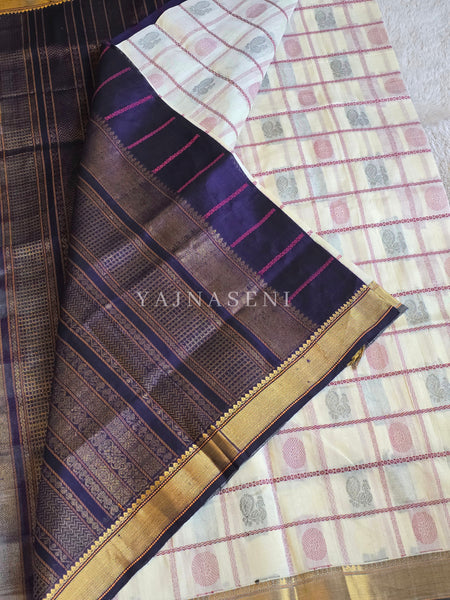 Expertly handwoven with a blend of at least 60% pure silk and 40% fine cotton. Ideal for both festive occasions and elegant temple wear, it strikes the perfect balance between tradition and comfort.