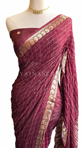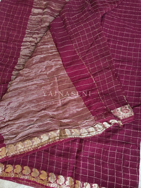 Crushed Frabric Viscose Georgette with Checkered, Gold Zari