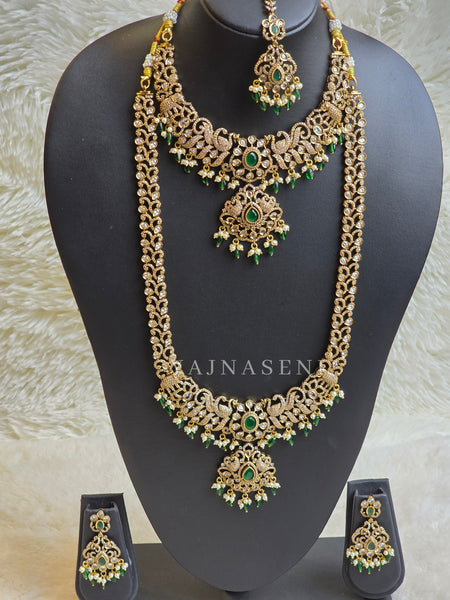 HAVEENA is a combo set consisting of a choker and a long necklace with a pair of earrings and a tikka.