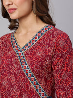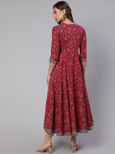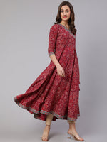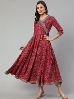 - Dress - Cotton. V Neck. 3/4 Sleeves.