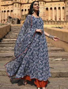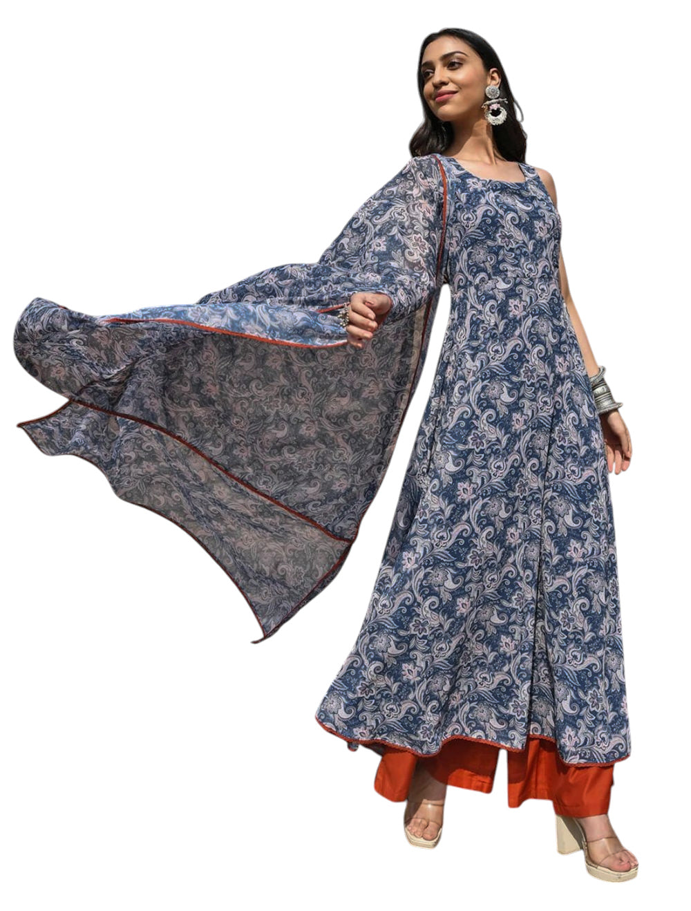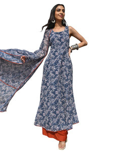 - Top - Georgette. Flared long maxi kurti. Sleeveless.