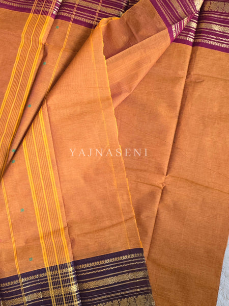 Kanchi Cotton Saree x Ganga-Jamuna Border : Dark Amber x Dark Brown x Wine
