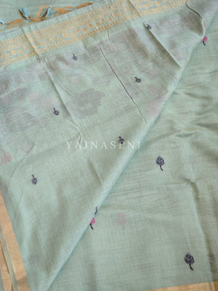 Linen Cotton Saree with beautiful Pichwai tales embroidered
