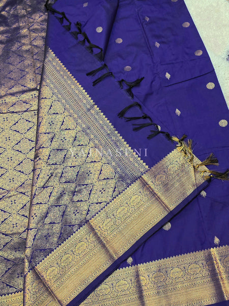 Luxe Edit x Semi Soft Silk Gold Zari Saree - Royal Blue