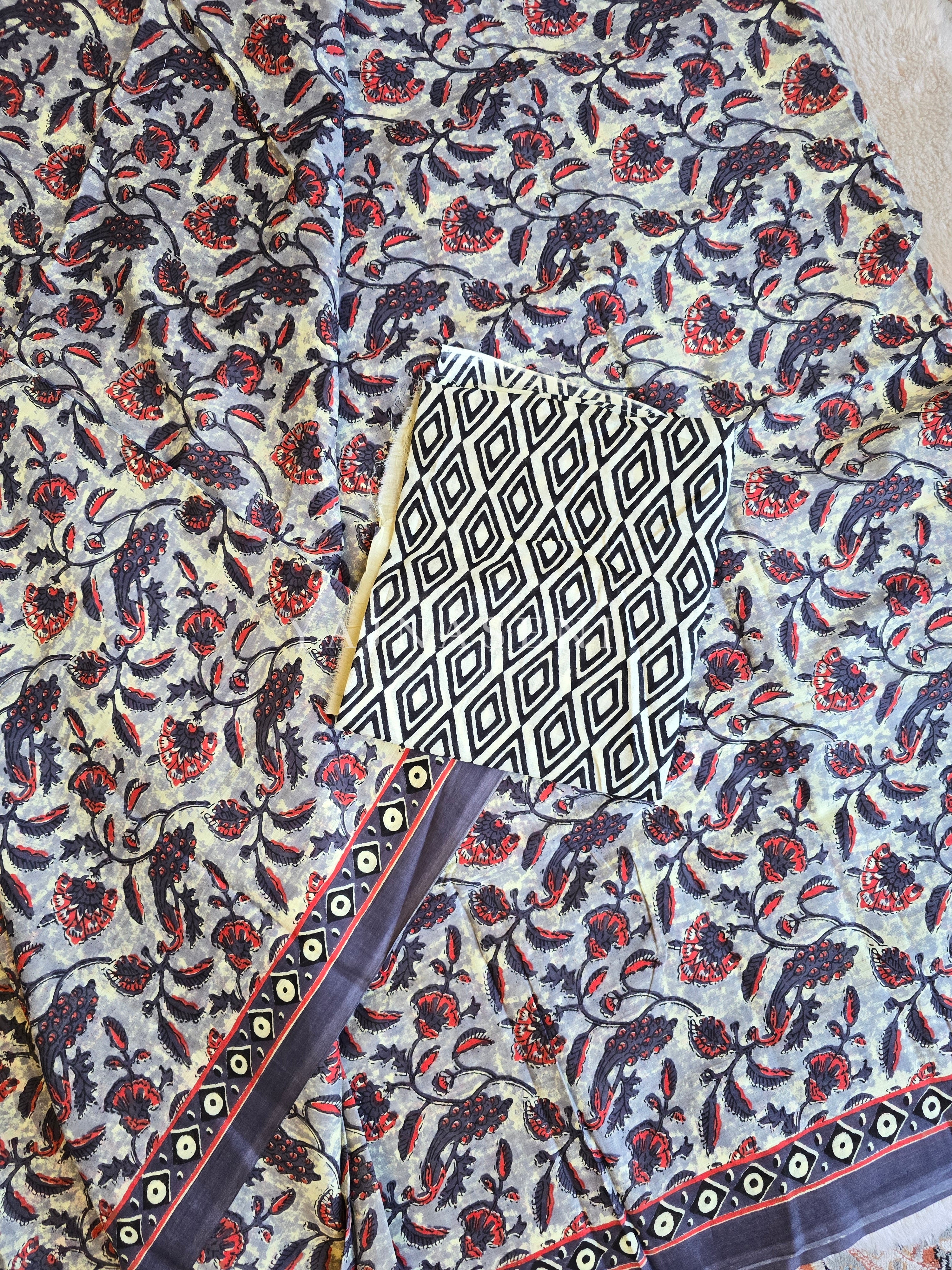 Please allow slight differences due to handmade products and manual measurements. The minor thread pulls, thread knots, and small ink dye smudges are not considered a defect. Slight differences in each production batch of yarn, its weaves, and colors such as dye marks are commonly found on sarees as it’s the outcome of human involvement in the process. Such irregularities are an indigenous inclusion in sarees and are not considered defects.