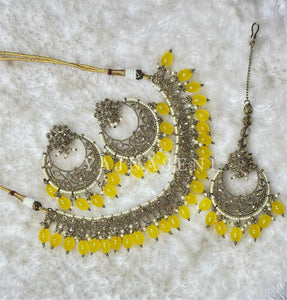 PARINEETA consists of a choker, earrings & a tikka.