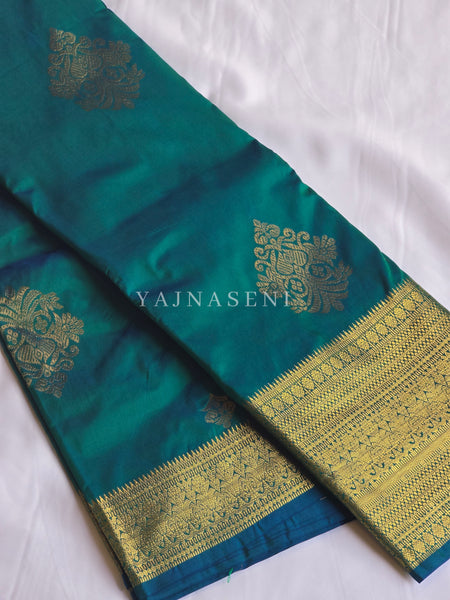 Royal Edit x Semi Soft Silk Gold Zari Saree - Peacock