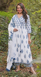 - Top - Cotton. Angrakha cut. 3/4 sleeves. V-neck.