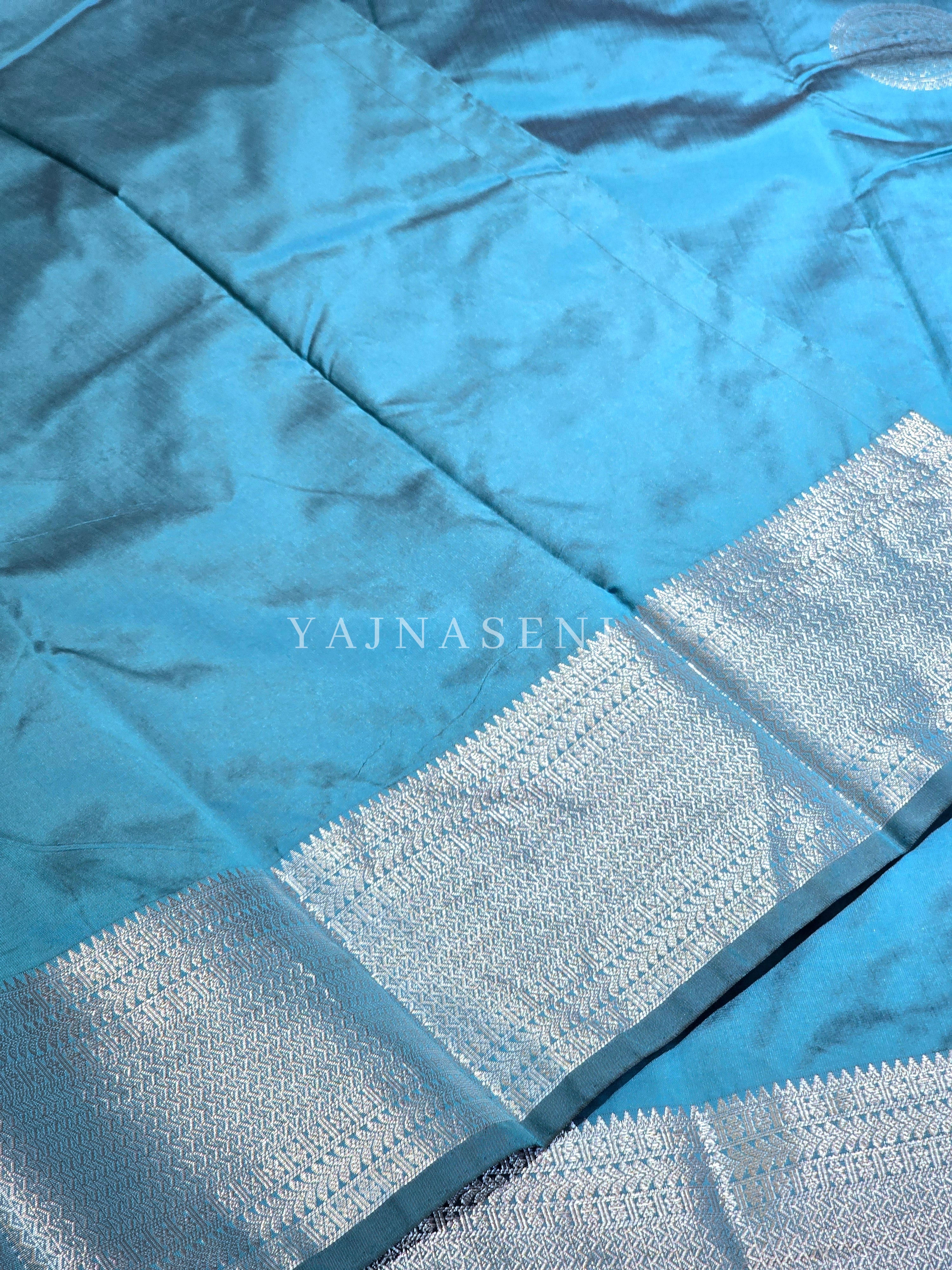 Motifs & Border designs weaved in Silver zari.