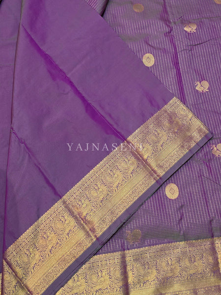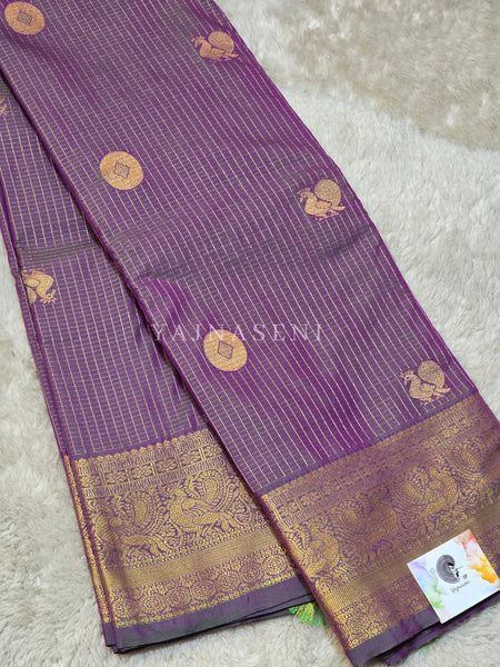 Vaira Oosi Checkered x Peacock Semi Silk Saree - Aurora Borealis Purple (Purple-Green undertone)