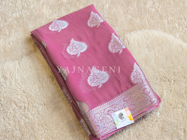 Viscose Georgette with silver zari work
